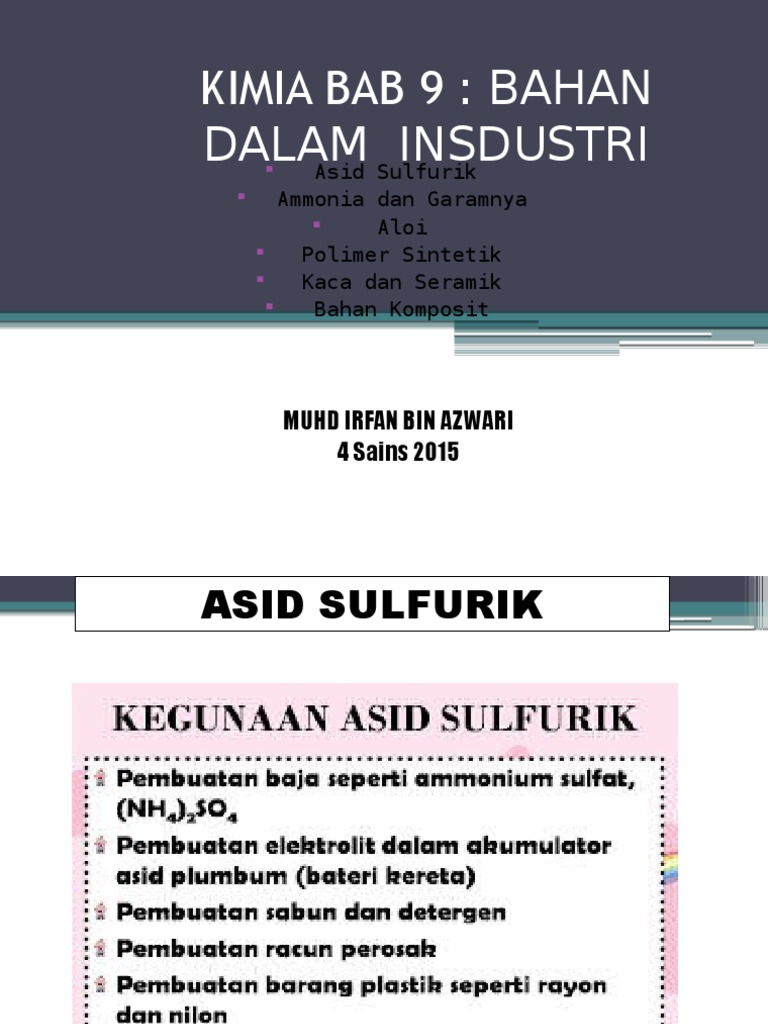 Bab 9 Polimer Bahan Buatan Dalam Industri By Asvitra Palaniandy from 0701.static.prezi.com Bahan buatan dalam industri 9.1 memahami pembuatan asid sulfurik 9.2 mensintesiskan pembuatan ammonia dan garamnya 9.3 memahami aloi 9.4 menilai kegunaan polimer sintetik 9.5 mengaplikasikan kegunaan kaca dan. Kimia tingkatan 4 bab 9 aloi. Kimia tingkatan 4 bab 6. Bagi aktiviti ini, pelajar dalam kelas seramai 30 orang ini. Bab 9 biologi tingkatan 4. Ikatan hidrogen kimia tingkatan 4. Sejarah nota ringkas tingkatan 4. Folio kimia bab 9 tingkatan 4.