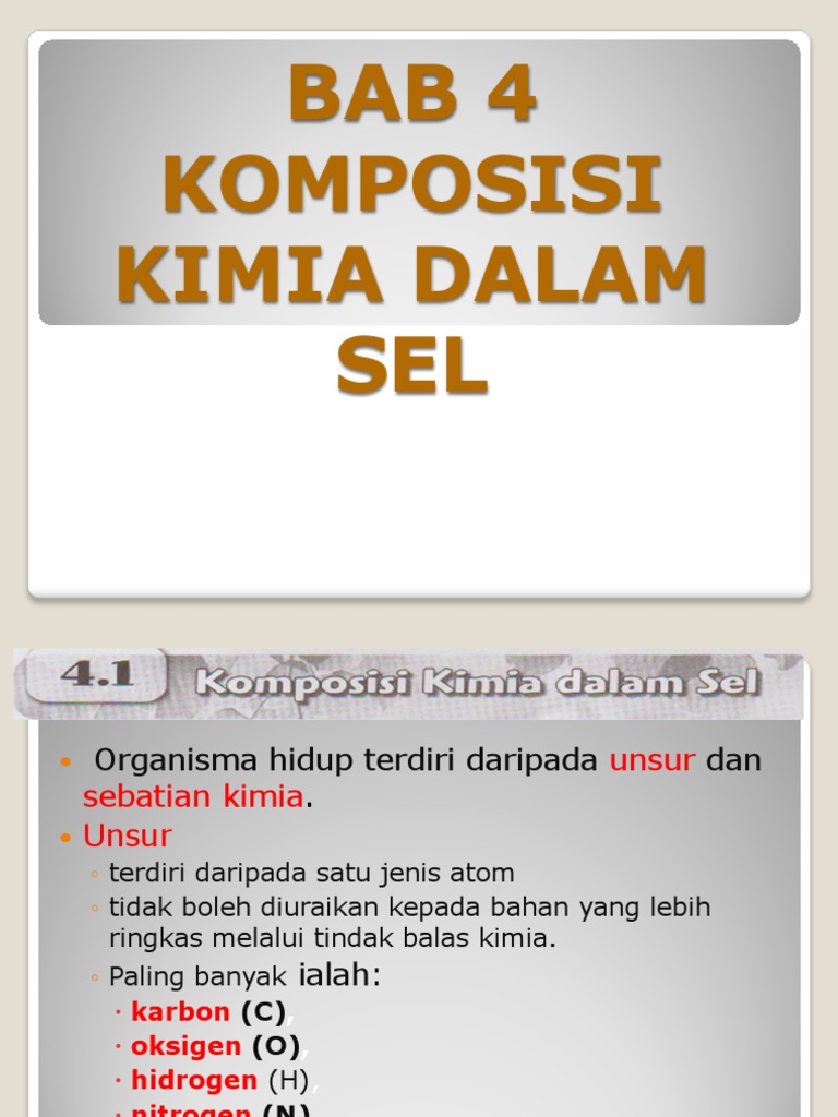 4.1 komposisi kimia dalam sel.