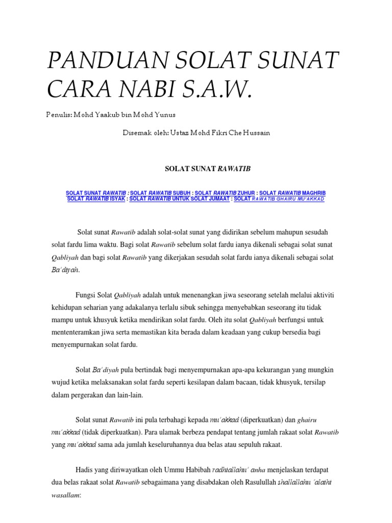 Adapun sholat sunnah sebelum shubuh ini merupakan yang paling utama di antara sholat sunnah rawatib dan rasulullah shallallahu 'alaihi wa sallam tidak pernah meninggalkannya baik ketika mukim (tidak berpegian) maupun dalam keadaan safar. Dua rakaat sebelum sholat subuh. Hal ini dikarenakan dalam menjalankan sebuah ibadah, seseorang tidak perlu melakukannya dengan menggunakan niat yang muluk muluk. Yang dimaksud shalat rawatib adalah shalat sunnah yang dirutinkan sebelum atau sesudah shalat wajib. Dari semua sholat sunat, tak ada sholat sunat yang paling nabi jaga, seperti halnya nabi menjaga (untuk tidak meninggalkan) dua roka'at sholat fajar (2 barangsiapa yang menjaga (shalat) empat rakaat sebelum zuhur dan empat rakaat sesudahnya, allah haramkan baginya api neraka.