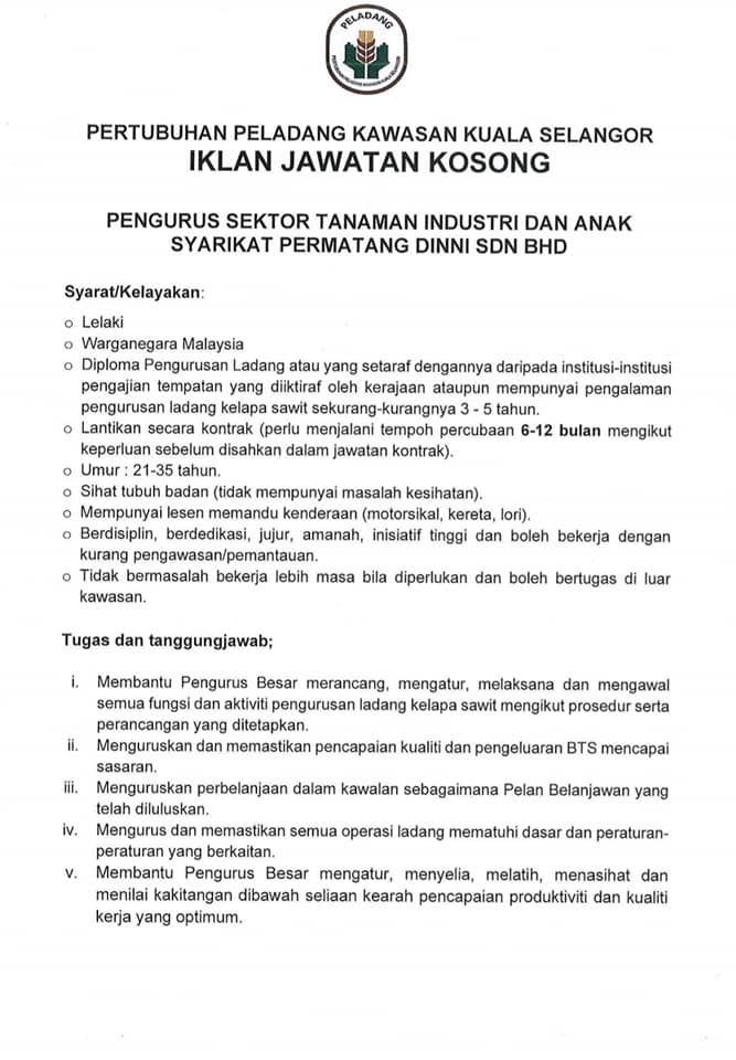 Related : Jawatan Kosong Pertubuhan Peladang : Dapatkan kerja dan jawatan kosong kerajaan dan swasta seluruh negeri di malaysia yang menawarkan gaji tinggi dan lumayaan dan terbaik..